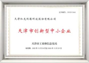 2022年12月,受天津市工业和信息化局批准,公司荣获创新型中小企业称号。
