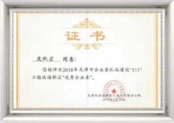 2019年5月,董事长庞秋宏荣膺“天津市优秀企业家”称号。